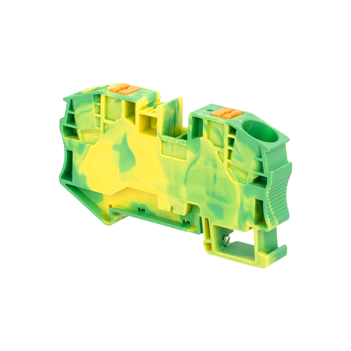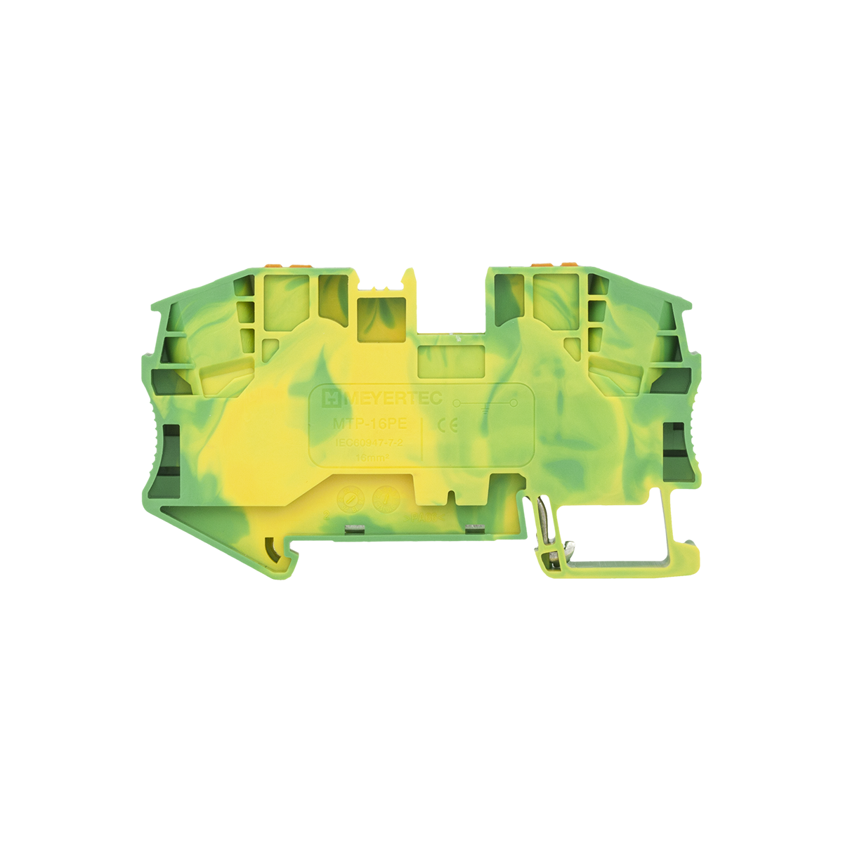 Заземляющие push-in клеммы MTP-16PE применяются для подключения защитных заземляющих проводников. Клемма фиксируется на DIN-рейке простым защелкиванием без использования инструментов.