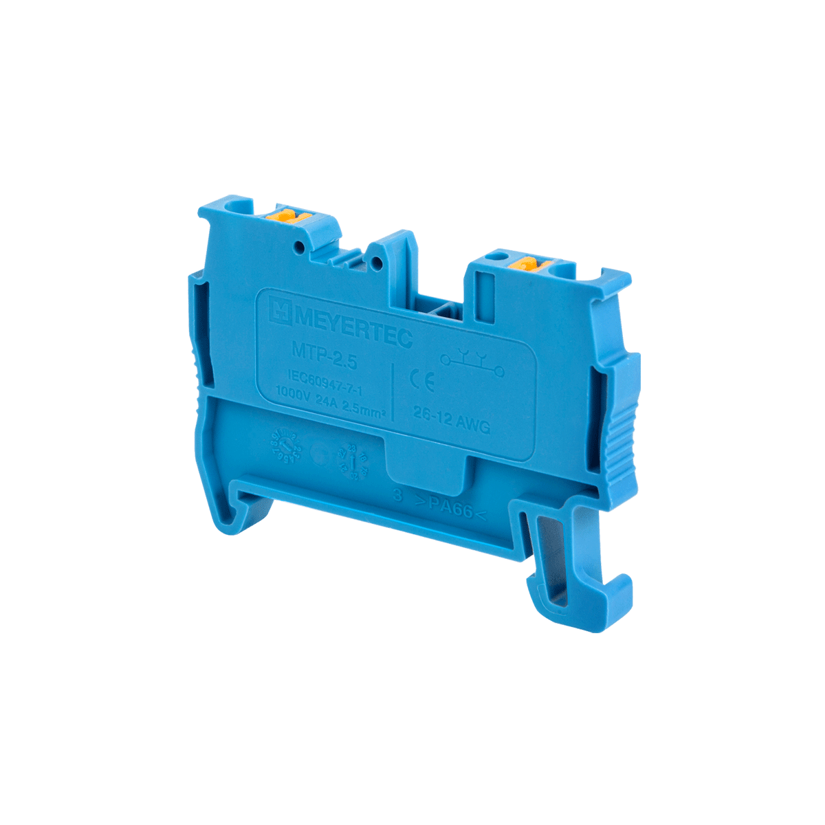 Одноуровневые push-in клеммы MTP-2.5BL предназначены для быстрого и удобного подключения проводников без использования специального инструмента. Клеммы обеспечивают безопасное и надежное соединение проводников сечением 2,5 мм². Рекомендуются для применения в шкафах управления и автоматизации с большим количеством сигналов.
