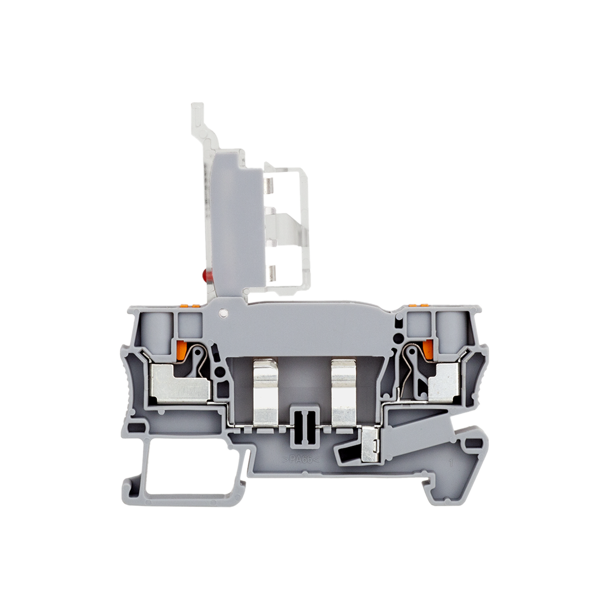 Клеммы push-in MTP-4F220 c держателем предохранителя устанавливаются в шкафах автоматики для защиты вторичных цепей от перегрузки и коротких замыканий. Данная модификация имеет светодиодную индикацию, которая информируют о перегорании предохранителя.