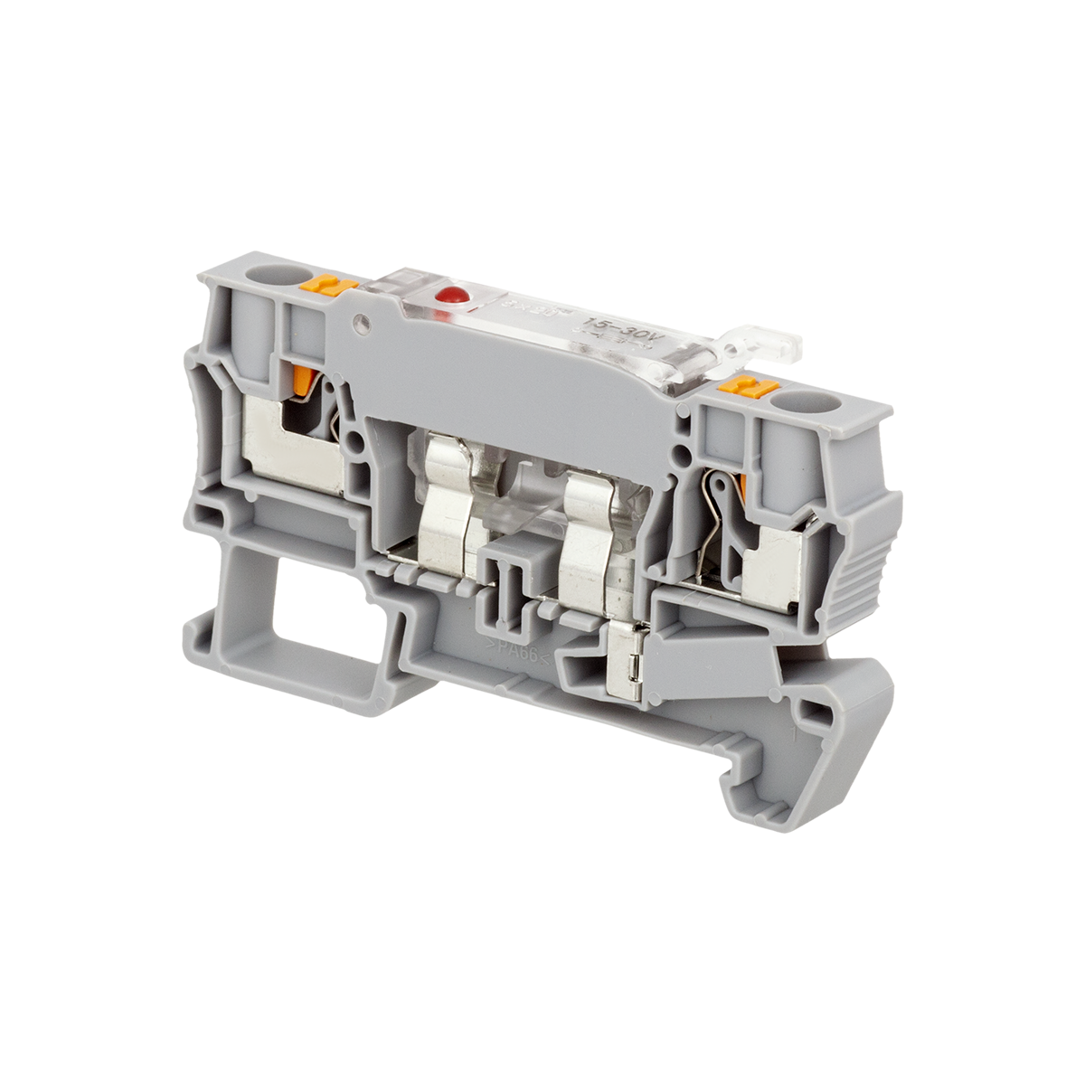 Клеммы push-in MTP-4F24 c держателем предохранителя устанавливаются в шкафах автоматики для защиты вторичных цепей от перегрузки и коротких замыканий. Данная модификация имеет светодиодную индикацию, которая информируют о перегорании предохранителя.