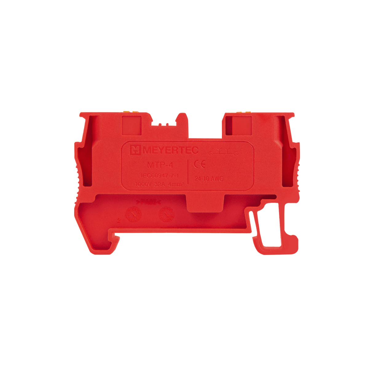 Одноуровневые push-in клеммы MTP-4RD предназначены для быстрого и удобного подключения проводников без использования специального инструмента. Клеммы обеспечивают безопасное и надежное соединение проводников сечением 4 мм². Рекомендуются для применения в шкафах управления и автоматизации с большим количеством сигналов.