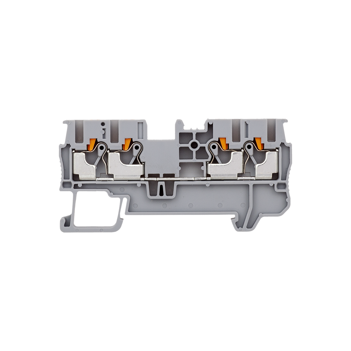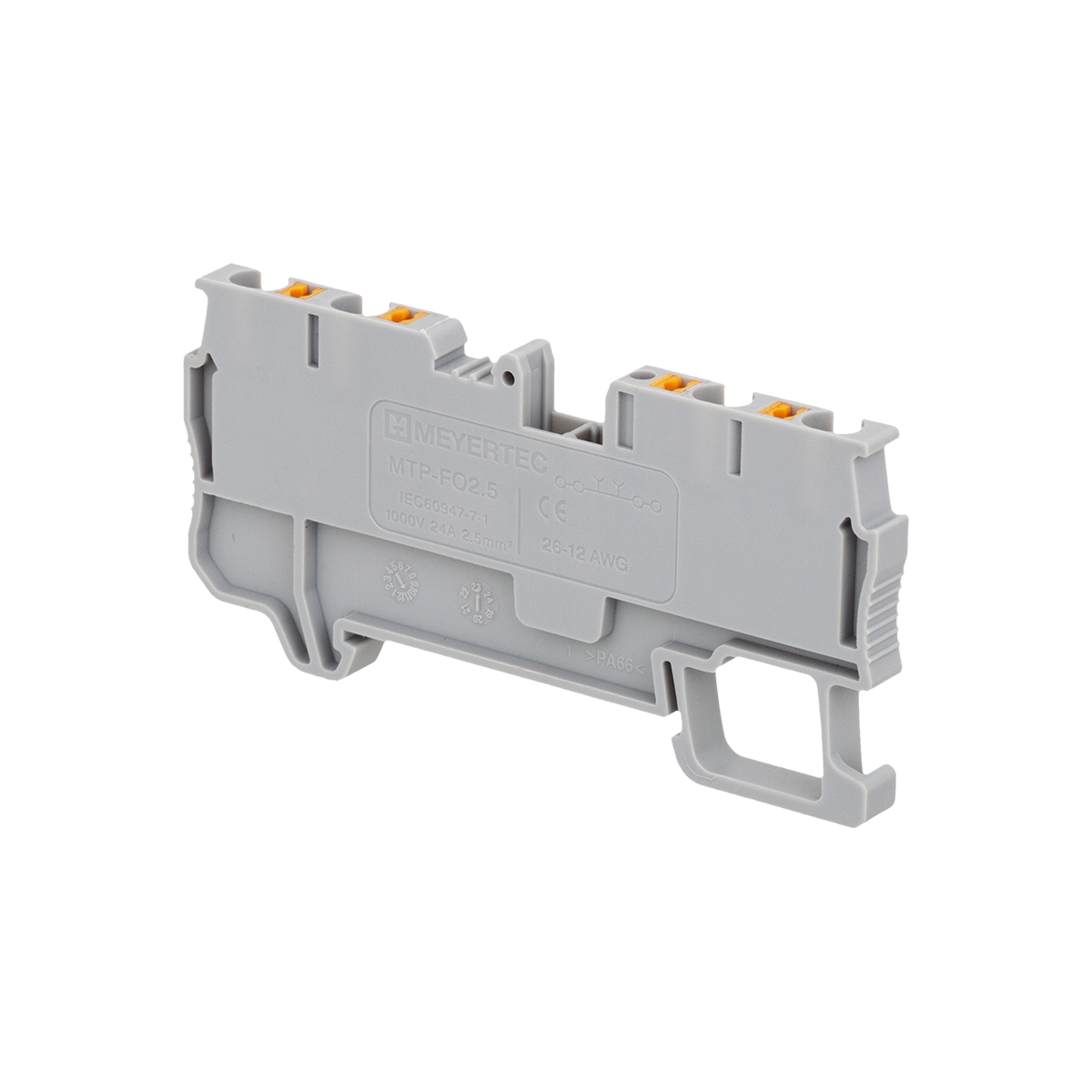 Четырехпроводные push-in клеммы MTP-FO2.5 применяются для разветвления токовых цепей. В отличие от многоуровневых клемм данные клеммы имеют единую токопроводящую шину на 4 присоединения.