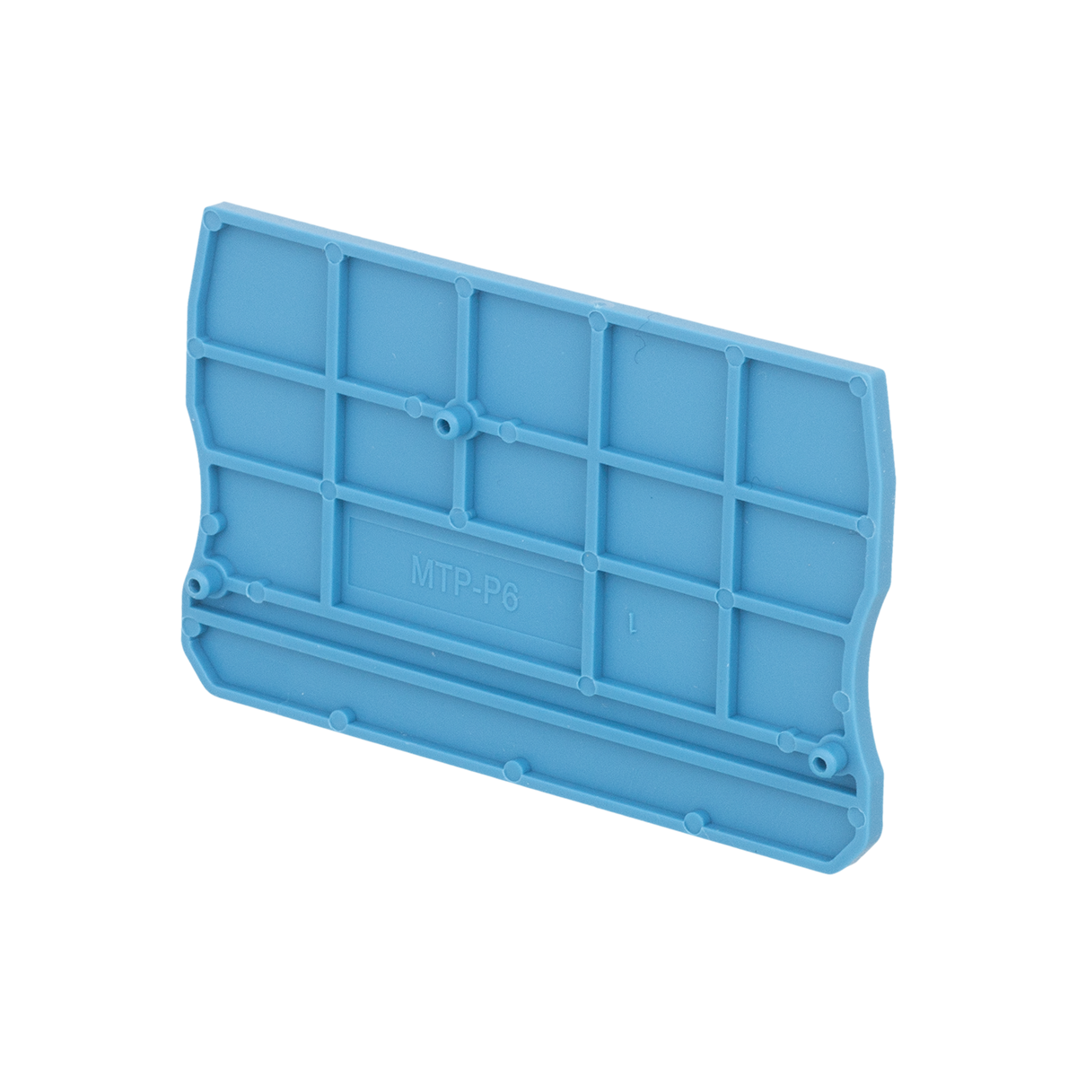 Торцевые заглушки MTP-PBL6 предназначены для закрытия токоведущей части одноуровневых push-in клемм сечением 6 мм² синего цвета.