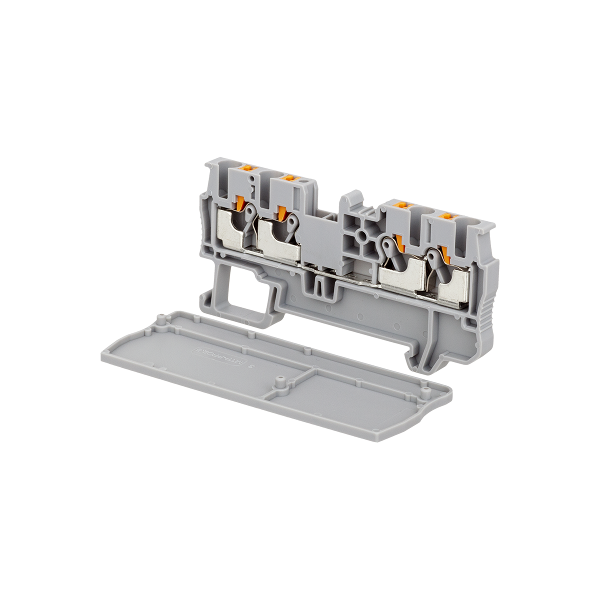 Торцевые заглушки MTP-PFO2.5 предназначены для закрытия токоведущей части четырехпроводных push-in клемм сечением 2,5 мм².
