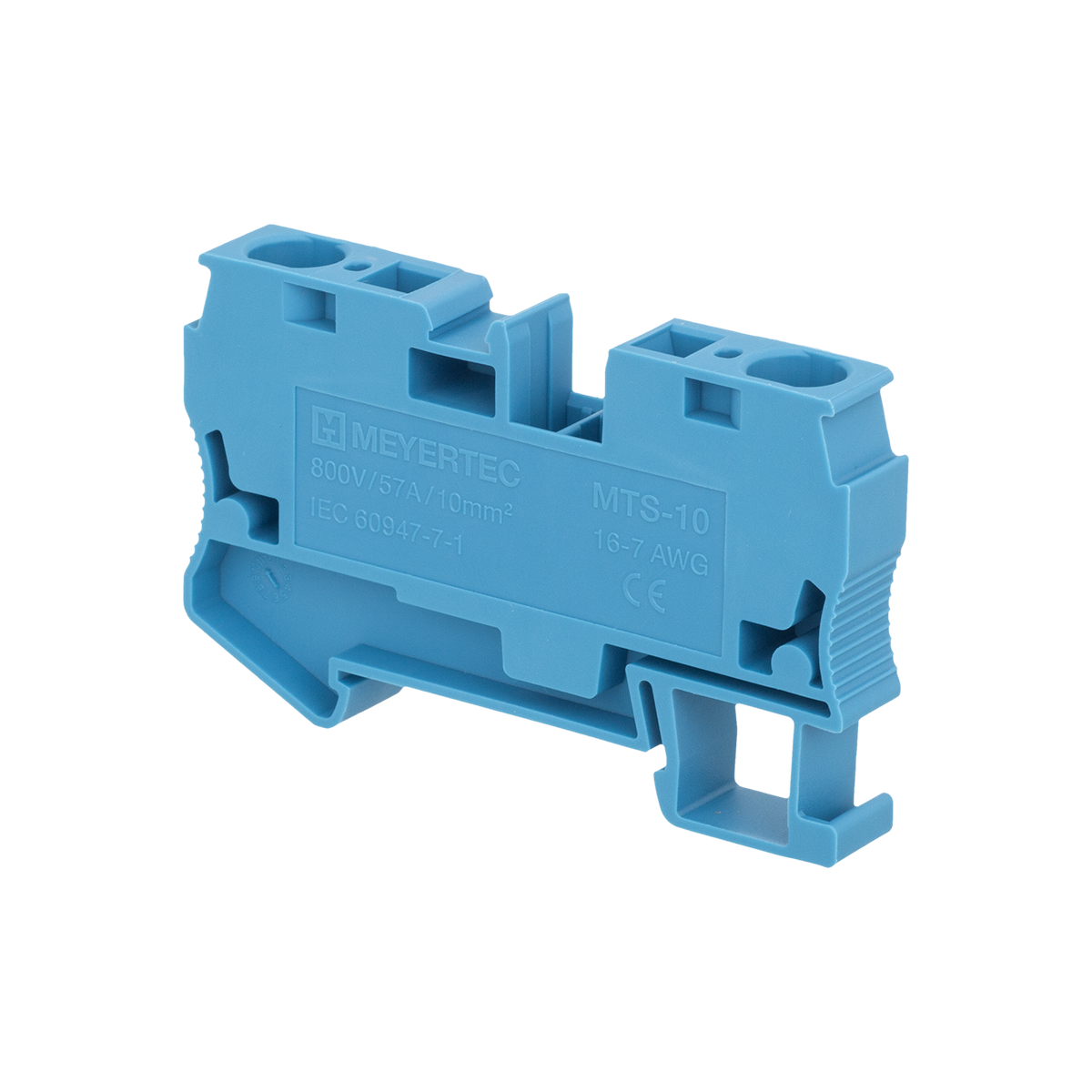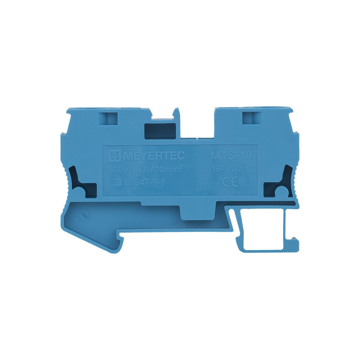 Одноуровневые пружинные клеммы MTS-10BL предназначены для упрощения подключения проводников в шкафах автоматизации, управления и распределения электроэнергии. Клеммы обеспечивают безопасное и надежное соединение проводников сечением 10 мм².