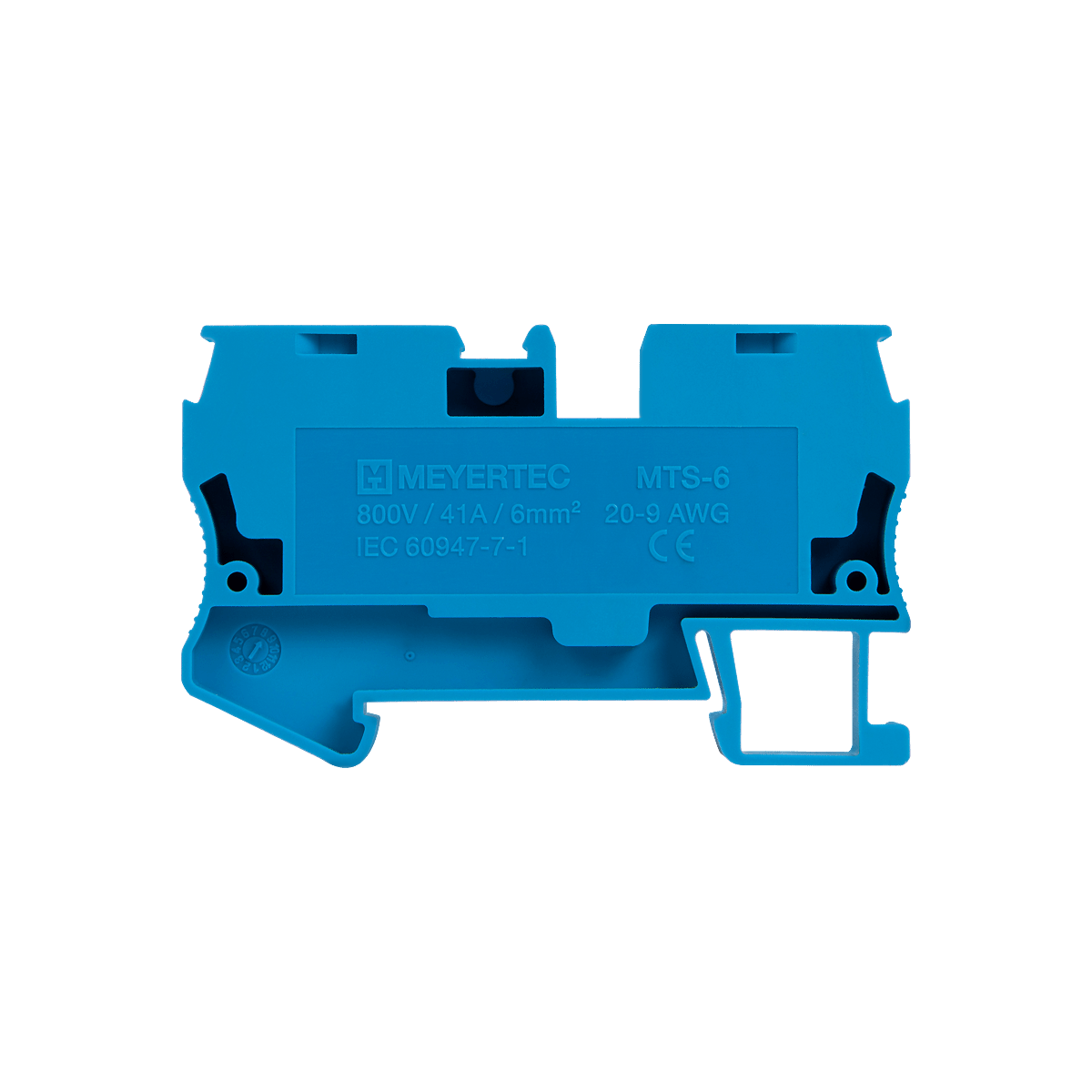 Одноуровневые пружинные клеммы MTS-6BL предназначены для упрощения подключения проводников в шкафах автоматизации, управления и распределения электроэнергии. Клеммы обеспечивают безопасное и надежное соединение проводников сечением 6 мм².