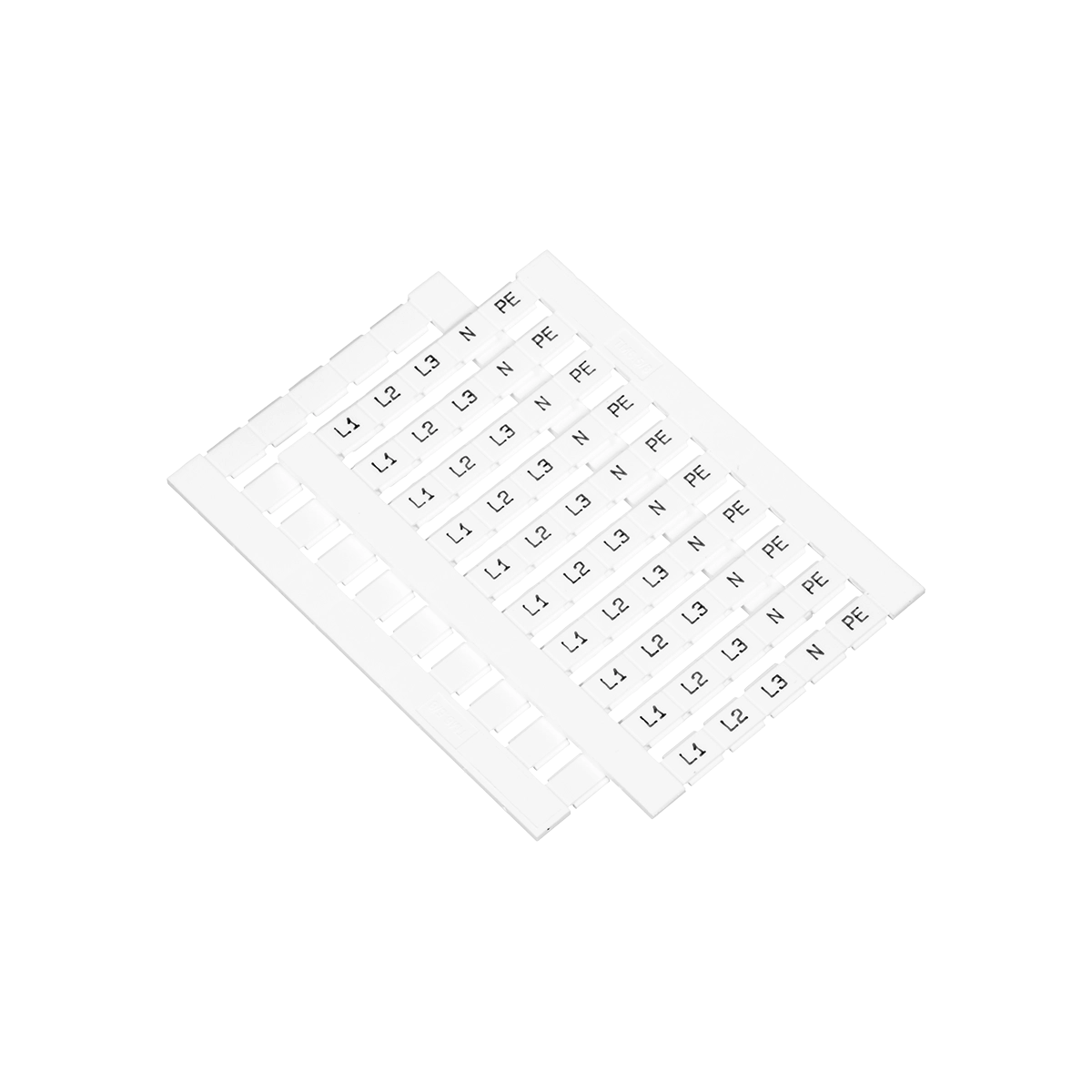 Боковая маркировка MTS-6ML (символы L1, L2, L3, N, PE) предназначена для нумерации и удобства визуализации при подключении проводников к клеммам. Маркировка поставляется в упаковках по 10 лент, каждая лента состоит из 10 маркировочных пластин.