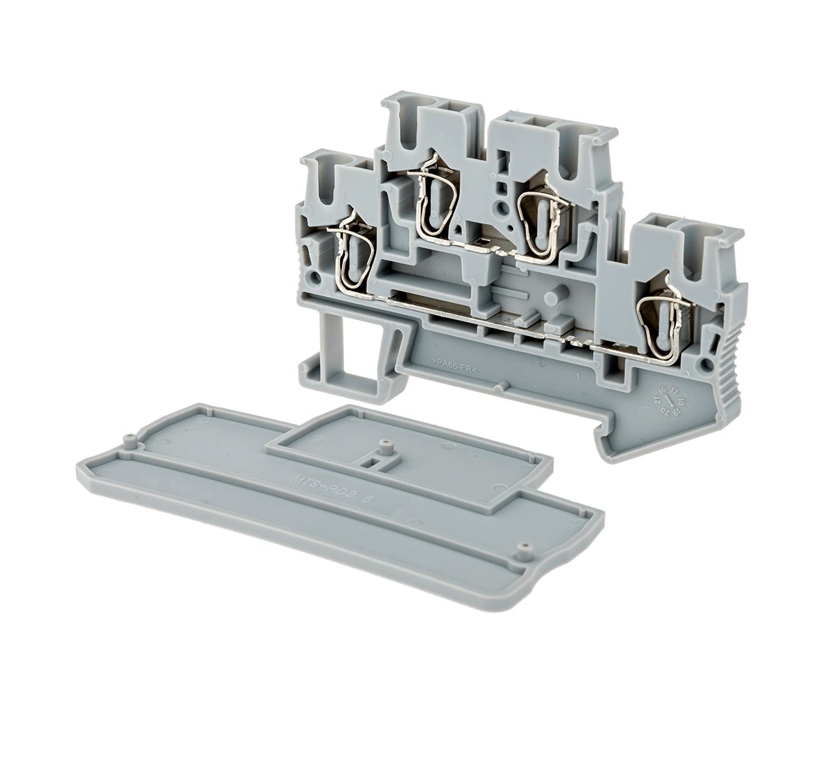 Торцевые заглушки MTS-PD2.5 предназначены для закрытия токоведущей части пружинных двухуровневых клемм сечением 2,5 мм2. Используются для клемм арт. MTS-D2.5.