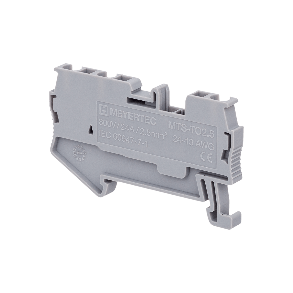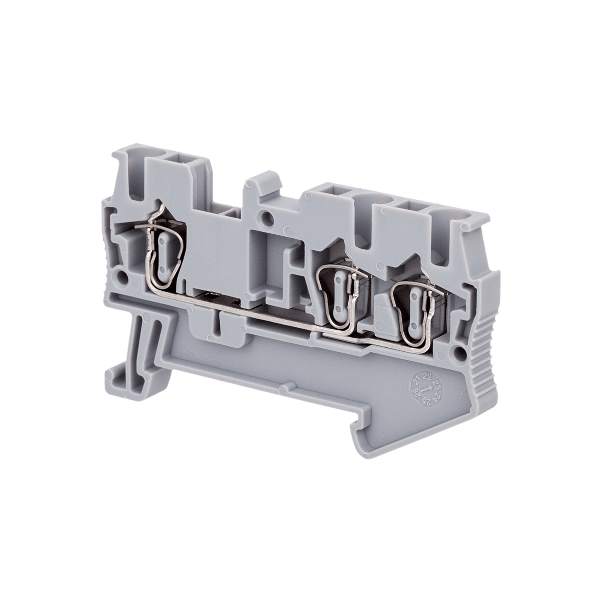Трехпроводные пружинные клеммы MTS-TO2.5 применяются для разветвления токовых цепей. Данный тип удобен, когда к одной клемме необходимо подключить несколько проводников. В отличие от многоуровневых данные клеммы имеют единую токопроводящую шину на 3 присоединения.