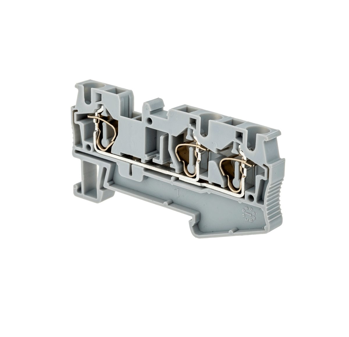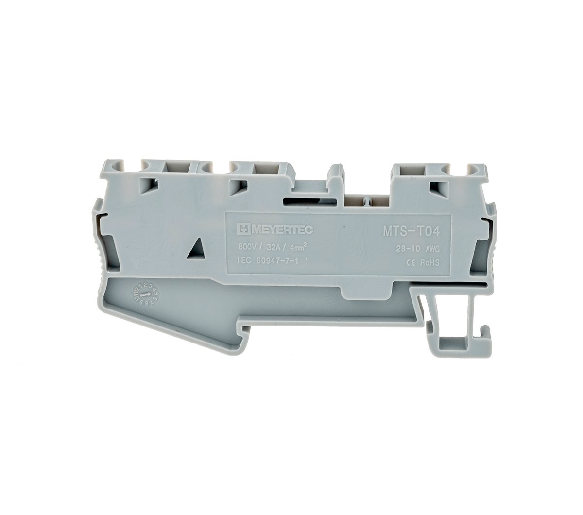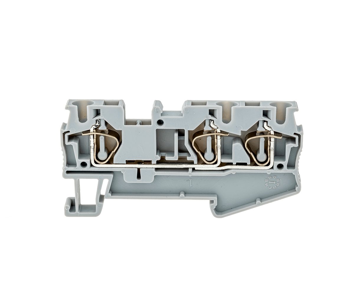 Трехпроводные пружинные клеммы MTS-TO4 применяются для разветвления токовых цепей. Данный тип удобен, когда к одной клемме необходимо подключить несколько проводников. В отличие от многоуровневых клемм данные клеммы имеют единую токопроводящую шину на 3 присоединения.