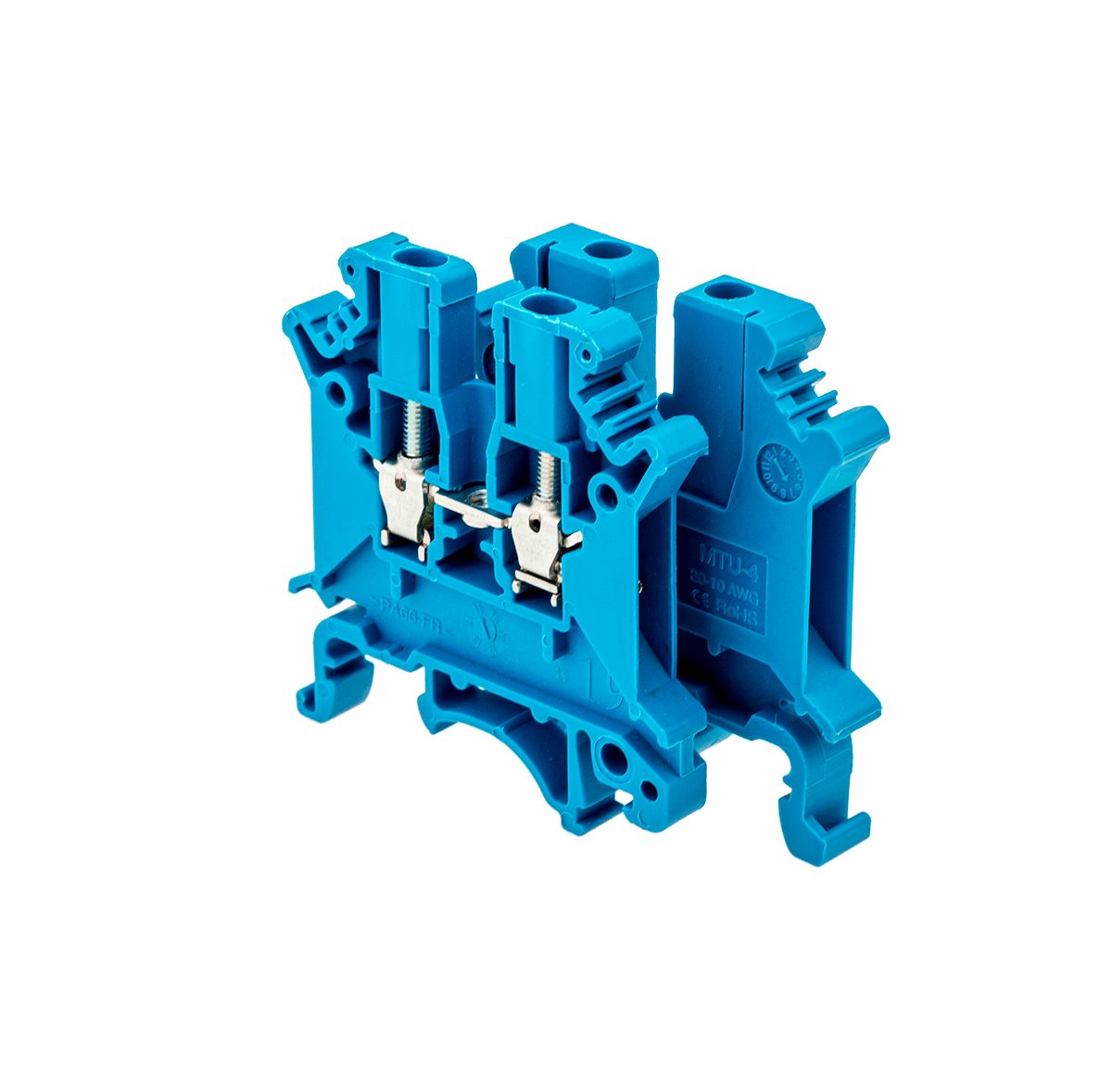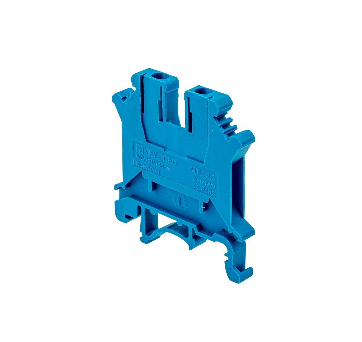 Одноуровневые винтовые клеммы MTU-2.5BL – простой и удобный способ подключения устройств в шкафах автоматики. Клеммы MTU-2.5 предназначены для проводников сечением 2,5мм2. Открытую токопроводящую часть клеммного ряда необходимо закрыть торцевой заглушкой. Одноуровневые клеммы имеют одинаковые габаритные размеры для всех сечений, кроме ширины, которая зависит от сечения выбираемого проводника.