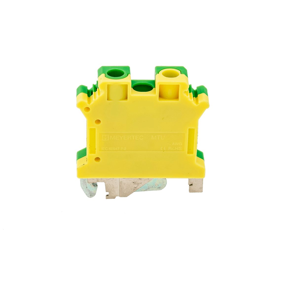 Заземляющие клеммы MTU-6PE обеспечивают заземление проводников благодаря контакту токоведущей шины с DIN-рейкой (при условии заземления монтажной пластины шкафа). Конструкция клемм не требует применения торцевых заглушек. Заземляющие клеммы надежно устанавливаются на DIN-рейке с помощью винта, что позволяет использовать их в качестве торцевых фиксаторов клеммного ряда.