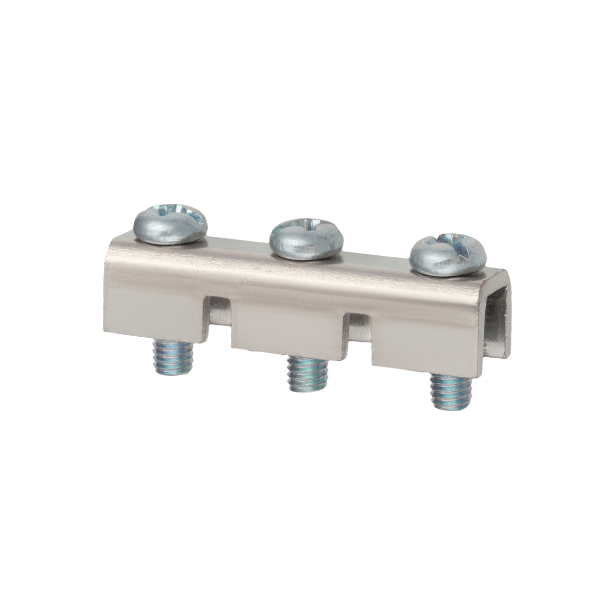 Блоки перемычек MTU-J350 предназначены для распределения потенциала между силовыми клеммами сечением 50 мм². Устанавливаются в вертикальные пазы клемм. Обеспечивают возможность объединения потенциала трех смежно расположенных клемм.