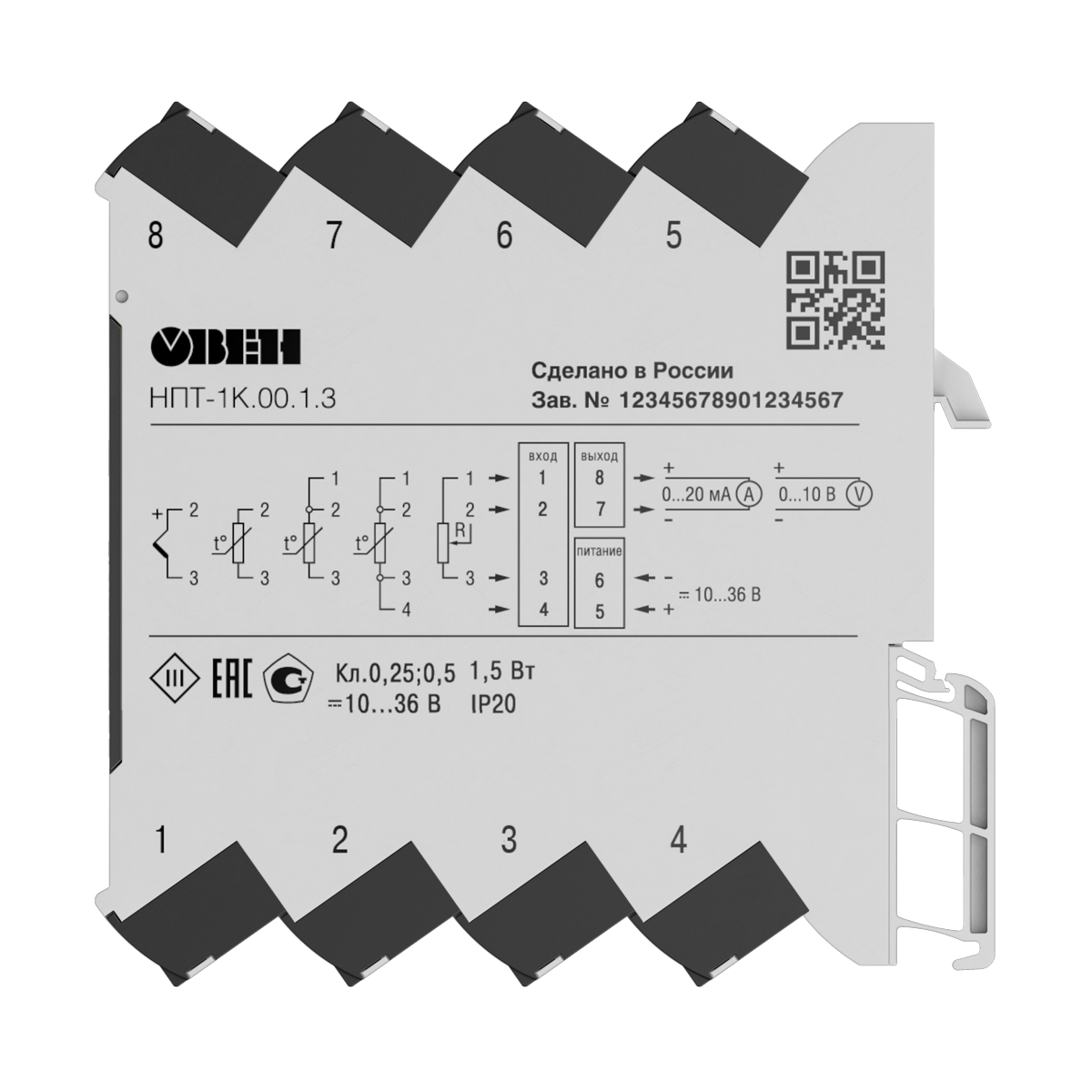 Преобразователь легко интегрируется в системы промышленной автоматизации. Благодаря компактному корпусу НПТ-1К занимает минимум места на дин-рейке — всего 6,1 мм.