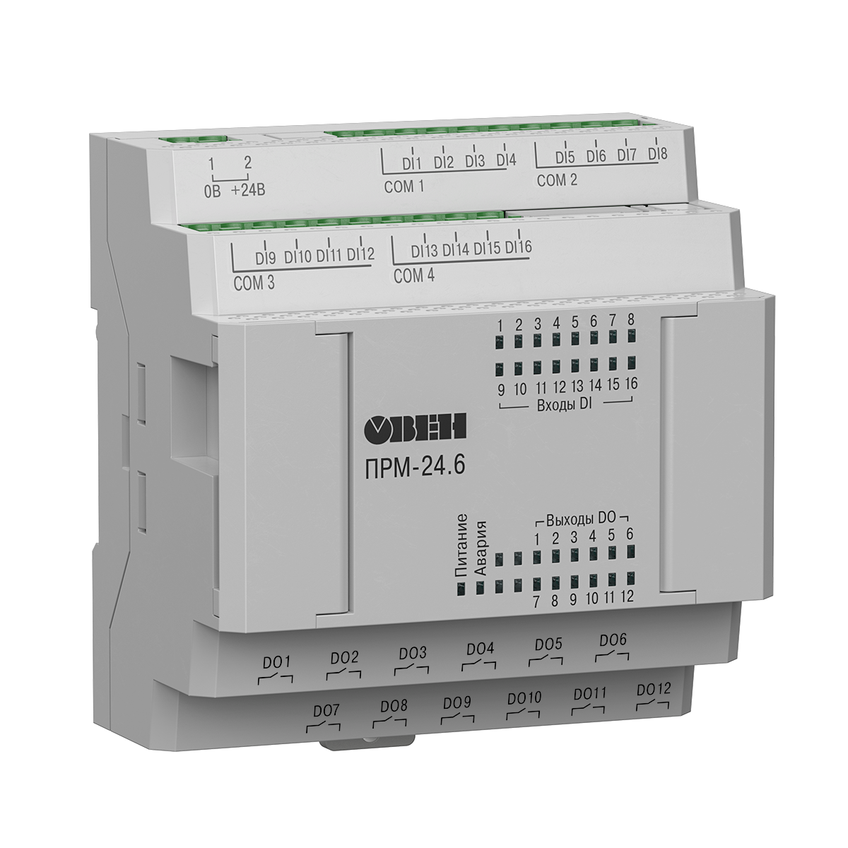 ПРМ-6 – 16 дискретных входов DI и 12 дискретных выходов DO.