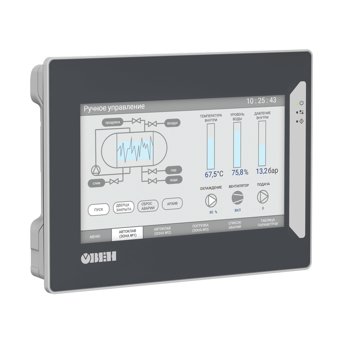 ОВЕН СПР400 — сенсорное панельное программируемое реле, объединяющее функции контроллера и панели оператора (HMI) в одном устройстве. Это позволяет создавать распределенные системы автоматизации, где каждый узел может выполнять локальные задачи контроллера и отображать/управлять процессами через встроенный HMI.